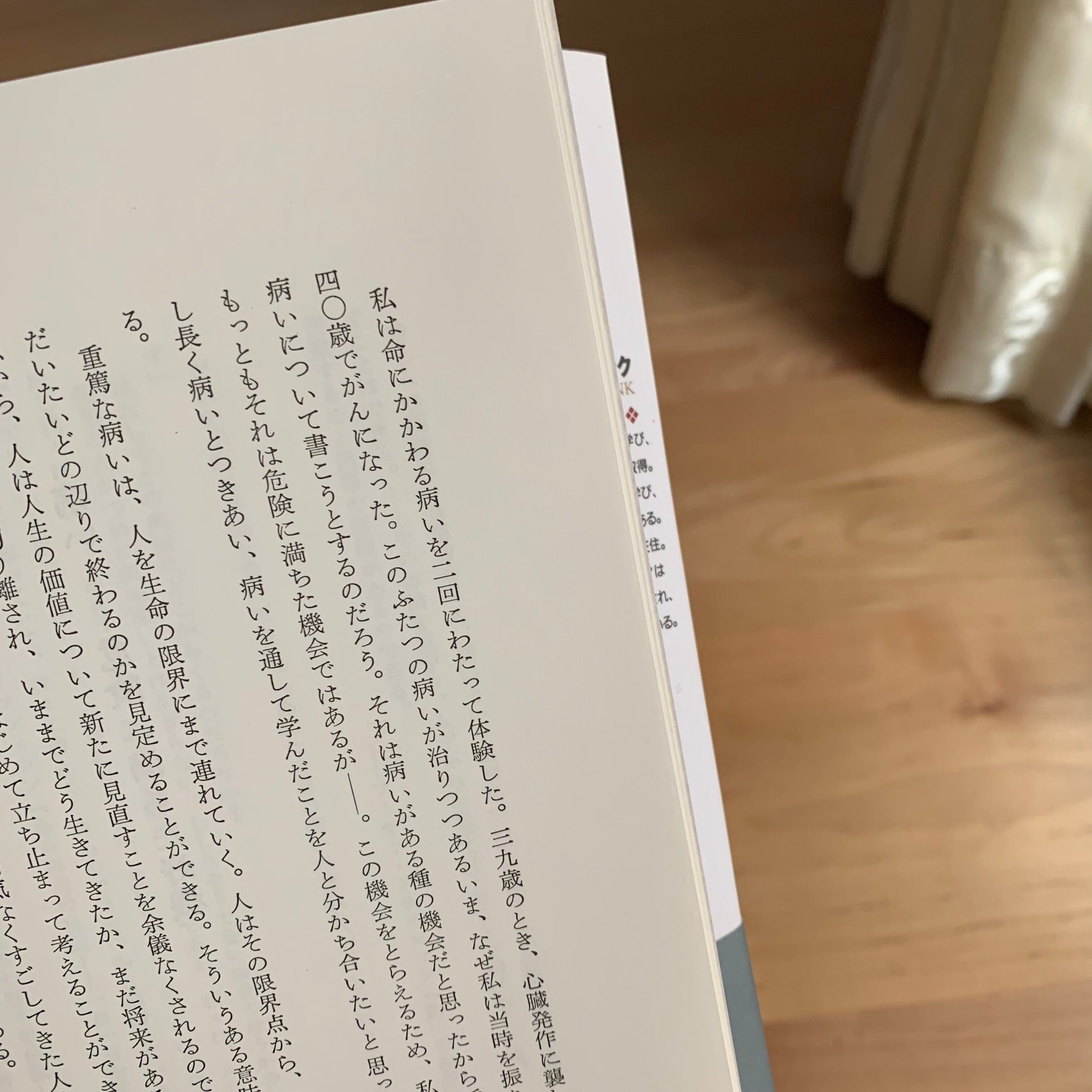 病い──危険に満ちた好機/病気になる/事故としての病い/ふたたび病気に/痛みを通して考える/失ったものを嘆き悲しむ/ケアに秘訣はない/「領土」としてのからだ、驚異を秘めたからだ/体裁をつくろうことの代価/化学療法という冒険/「苦闘」は「闘い」ではない/烙印/否定と肯定/慰める者と非難する者/病いの価値/病いに耳を傾ける/回復の儀式/儲けもの